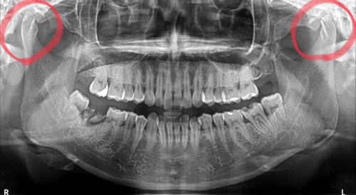 この方は、20代女性ですが、顎の関節が、左右とも、重度に吸収しています
