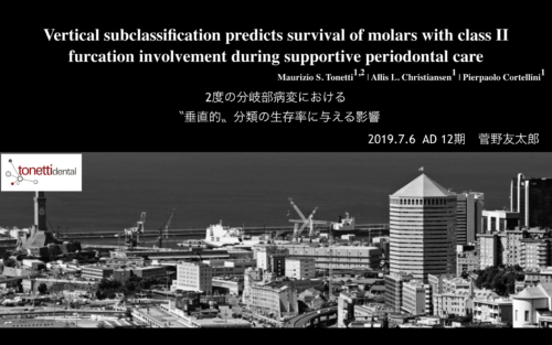 今回のテーマは、奥歯の歯周病で、特に分岐部病変と言われるものでした。