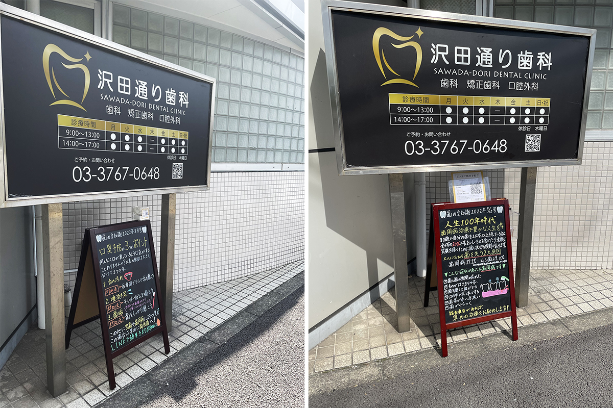 当院では8月から交差点に面している看板の下に